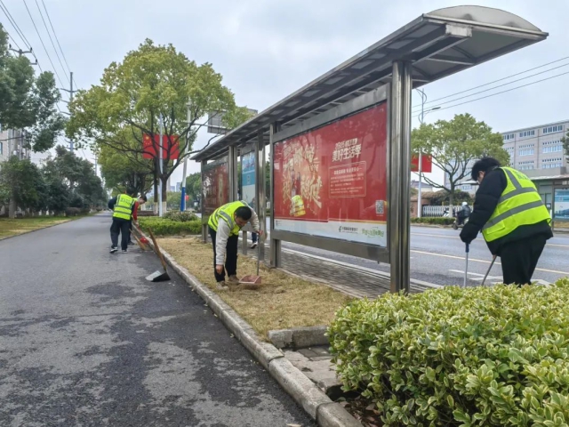 設(shè)計總院高速檢測蕪宣試驗(yàn)室青年志愿者打掃公交站臺
